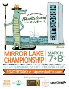 Mirror Lake Championship, St. Petersburg, Florida, USA On March 7 and 8, 2026, there will be 196 players competing in one of the biggest shuffleboard championships in the world. Ninety players are traveling to sunny St. Petersburg from New York, Chicago, Texas and Norway. This is an amateur open singles format, and the championship round will be played on Sunday afternoon (March 8). This is a fun event for players and spectators alike.